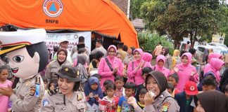 Anak-anak di Pengungsian Gembira Kedatangan Bhayangkari Polda Banten dan Satgas Polwan...