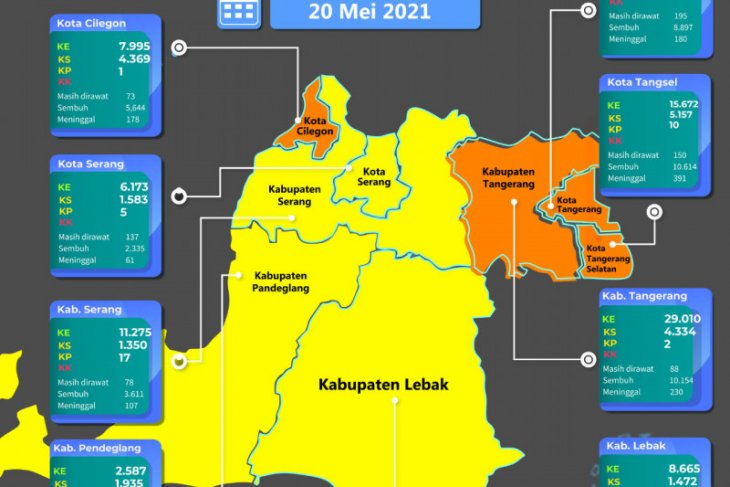Berdasarkan data Satgas COVID-19 Provinsi Banten secara keseluruhan di Banten jumlah hingga 20 Mei kasus konfirmasi yang masih dirawat sebanyak 877 orang.