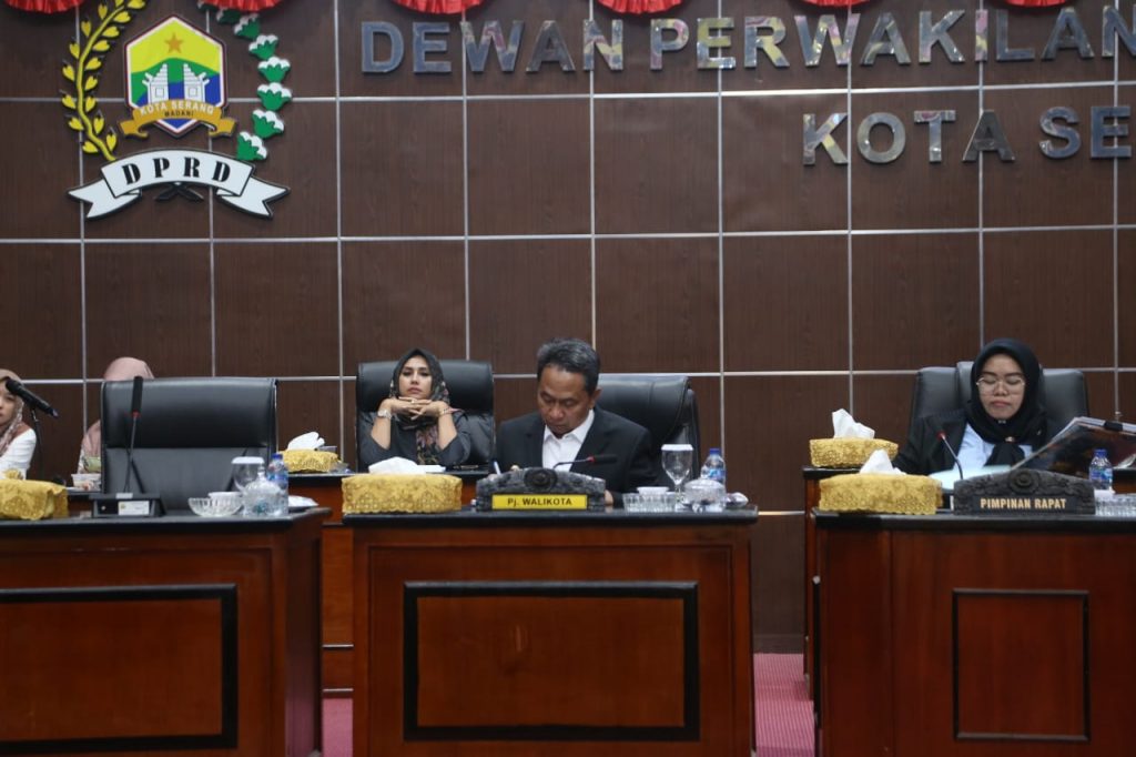 ditemui usai sidang paripurna, Pj Wali Kota Serang Yedi Rahmat memberikan tanggapannya terkait penyampaian hasil evaluasi gubernur terhadap raperda APBD T.A 2024.