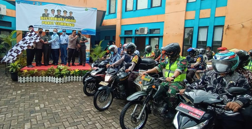 Sedikitnya ada 6.000 paket sembako bagi warga terdampak COVID-19, yang akan didistribusikan ke 23 wilayah kelurahan atau desa, yang tersebar di Kota Cilegon dan Kabupaten Serang, dengan cara door to door melibatkan petugas Babinsa dan Bhabinkamtibmas di tiap wilayah.