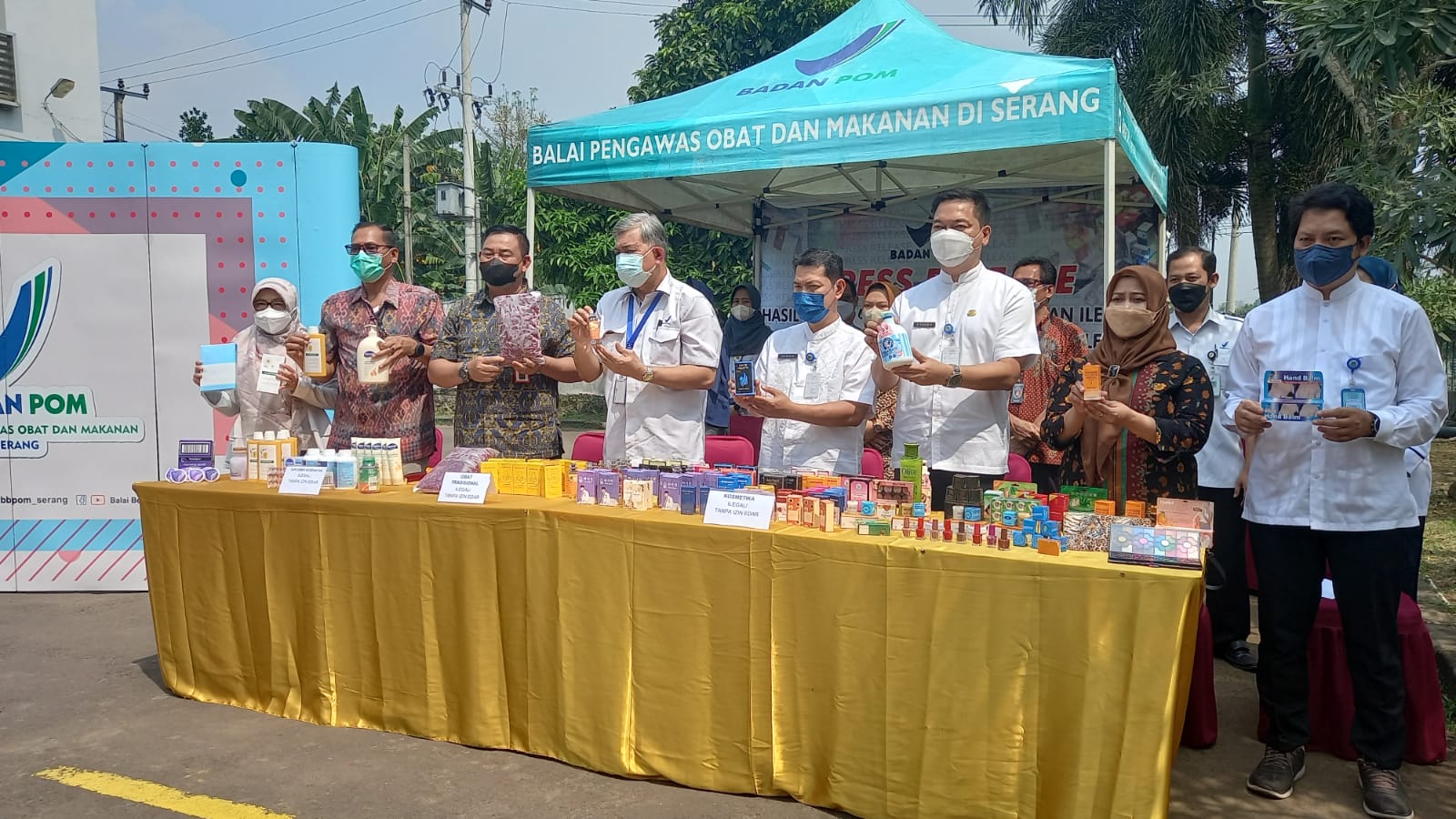 “Pengawasan kita laksanakan mulai dari 12 Juli hingga 26 Juli 2022 terhadap 55 sarana distribusi. Mulai dari obat tradisional, suplemen kesehatan, improtir dan kosmetik berbahaya. Hasilnnya pun, diperoleh 31 sarana Tidak Memenuhi Ketentuan (TMK) dengan temuan berupa kosmetik illegal dengan nilai keekonomian sekitar Rp. 59.406.000,00,” ungkap Faizal Mustofa Kamil saat ungkap kasus di kantor BBPOM, Jalan Raya Palima Kota Serang, Jumat (29/7/2022).