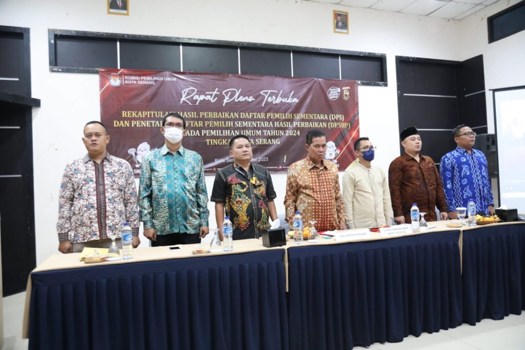 Kegiatan rapat pleno terbuka rekapitulasi hasil perbaikan daftar pemilih sementara (DPS) dan penetapan daftar pemilih sementara hasil perbaikan (DPSHP) pada Pemilihan Umum (Pemilu) Tahun 2024 tingkat Kota Serang dilaksanakan sebagai bentuk penyelarasan pendataan wajib pilih bagi masyarakat Kota Serang.