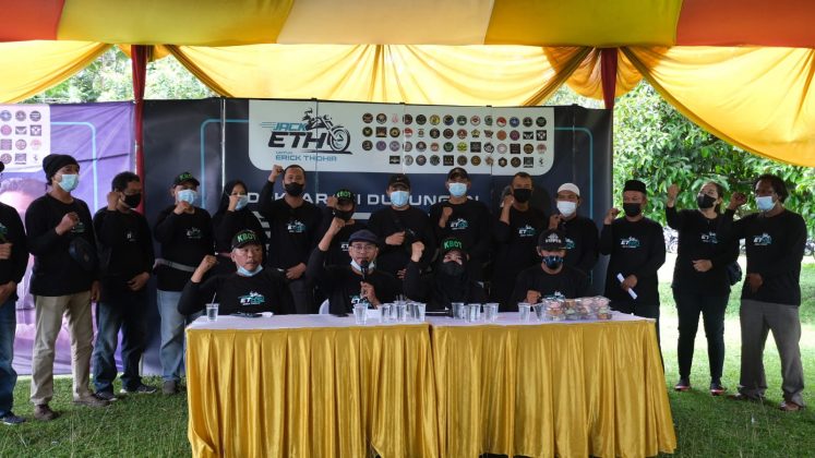 “Jack Etho tergabung dari kumpulan ojek berbagai platform dan ojek pangkalan. Dilandasi kesadaran kuat, kami kumpulan ojek mendeklarasikan secara terbuka mendukung Bapak Erick Thohir untuk maju sebagai calon Presiden 2024,” katanya saat deklarasi, Minggu (6/2/2022).