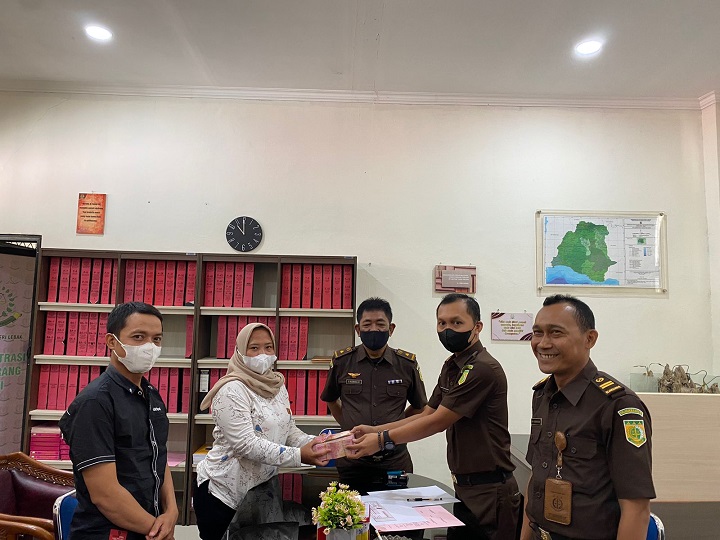 infobanten.id | Lebak. Kejaksaan Negeri (Kejari) Kabupaten Lebak menerima titipan uang pengganti dari AU (49) tersangka kasus korupsi bantuan langsung tunai (BLT), di Desa Pasindangan, Kecamatan Cileles, Lebak, Senin (28/3/2022).