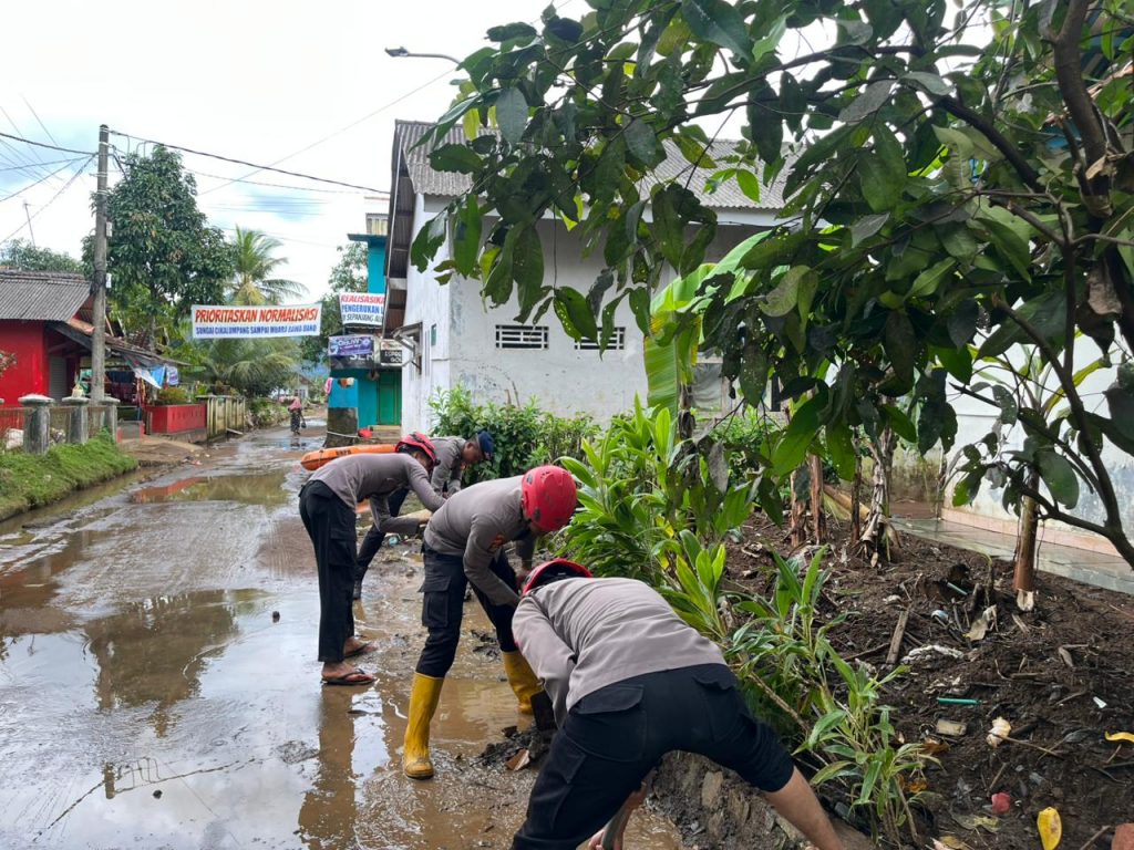 “Personel kami diterjunkan untuk membantu membersihkan lumpur sisa banjir di lingkungan warga agar aktivitas masyarakat dapat kembali berjalan normal. Ini merupakan bentuk kehadiran Polri di tengah masyarakat, khususnya saat terjadi bencana,” ujar Kombes Pol. Kukuh Priyo Taruno.