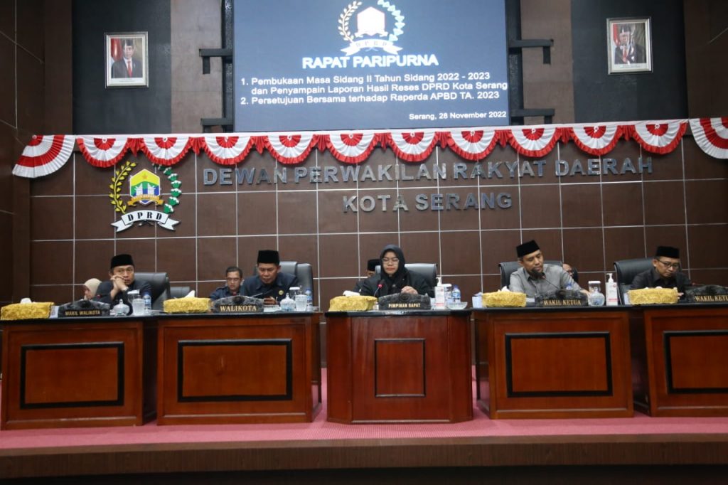 Kegiatan Rapat Paripurna tersebut dilakukan terkait dengan Pembukaan Masa Sidang II Tahun Anggaran 2022-2023 dan Penyampaian hasil reses DPRD Kota Serang sekaligus penandatanganan berita acara persetujuan bersama terhadap Raperda APBD Kota Serang T.A 2023.