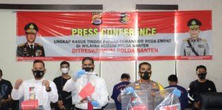 Ditreskrimum Polda Banten menggelar press conference keberhasilan ungkap kasus tindak pidana pencurian dengan pemberatan di Aula press Conference Bidhumas Polda Banten,...
