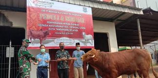 Warga di Kota Tangsel dan Kabupaten Tangerang diberi hewan kurban untuk perayaan Hari Raya Idhul Adha 1441 H/2020 dari PT Indah Kiat...