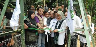 Bupati Lebak Iti Octavia Jayabaya meresmikan jembatan gantung, Rabu (05/02/2020)
