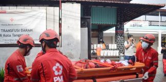 infobanten.id | Palang Merah Indonesia (PMI) Kota Tangerang menggelar simulasi kebakaran di gadung laboratorium UDD di Batu...