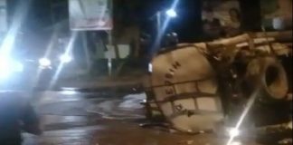 Truk Tanki Yang Terbalik di Tanjakan Lebak Seureuh Kabupaten Pandeglang